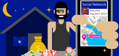 Da sich Freundeskreise in sozialen Netzwerken sehr weit verzweigen können, können auf diesem Wege unter Umständen auch völlig fremde Personen erfahren, dass zum Beispiel die gesamte Familie gerade im Urlaub ist und das Anwesen von Rapper MC Fantastic in Wuppertal für zwei Wochen leer steht.