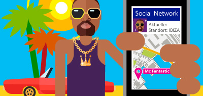 Sichtbare Informationen über den Aufenthaltsort können außerdem die eigene Onlinereputation beeinflussen. Denn oft lassen sie Rückschlüsse zu über Interessen, Aktivitäten oder Gruppen, zu denen man gehört. Ein Post mit der Standortangabe „O2 Arena“ offenbart so vielleicht versehentlich den Kollegen und Freunden die etwas peinliche Vorliebe für schnulzige Schlagermusik, weil alle wissen, dass an diesem Abend in der Halle das Konzert eines bekannten Schlagerstars stattfindet.Tipp