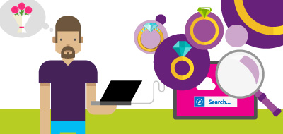 Paul möchte seiner Freundin Lisa einen Heiratsantrag machen und sucht im Internet nach einem Verlobungsring.