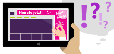 Doch als Paul sich wieder an den Laptop setzt, bemerkt er, dass ihm auf unterschiedlichen Webseiten sehr auffällige Werbung gezeigt wird: nämlich für Brautmode, Hochzeitsplaner und Juweliere. Das Internet „weiß“ also offensichtlich, dass bei Paul und Lisa eine Hochzeit ansteht. – Zum Glück hat Paul das bemerkt, bevor Lisa den Laptop wieder benutzt!Hinweis