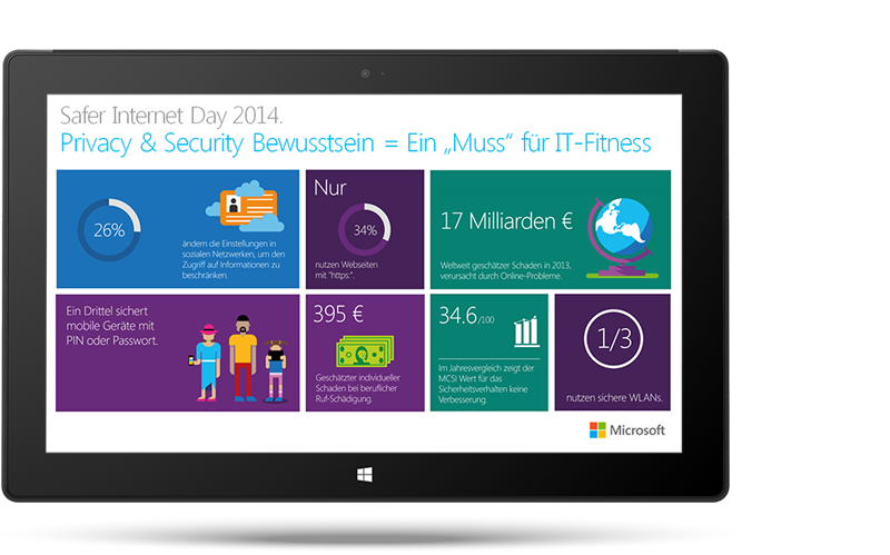 Industrie und Politik leisten dabei ihren Beitrag, sichere Produkte anzubieten und die Daten und Privatsphäre der Anwender zu schützen. Darüber hinaus möchte Microsoft aber auch den Nutzer unterstützen, Informationstechnologie sicher und souverän zu nutzen. Hierzu gehört unter anderem, Antivirensoftware auf den eigenen Endgeräten aktuell zu halten, verantwortungsvoll mit Passwörtern umzugehen und genau zu überlegen, wo man sensible Daten preisgibt.